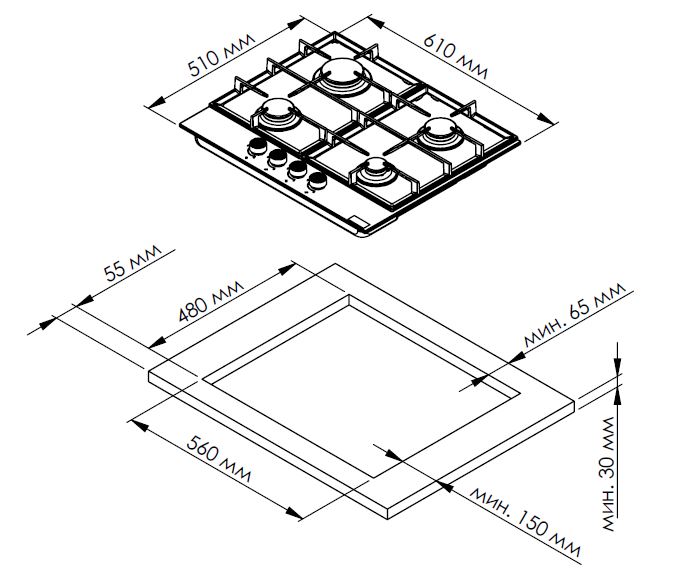 Ширина для встраивания: 56 см