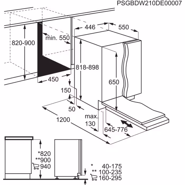 Размер ниши для встраивания: 81.8 x 45 x 55 см